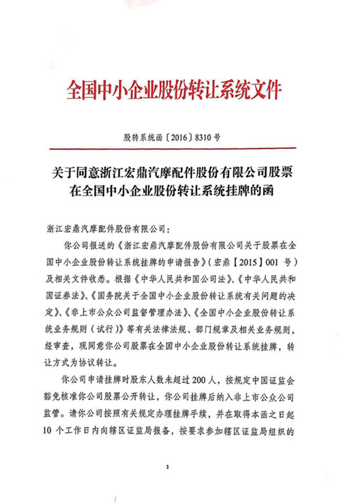 关于同意pp电子注册官网股票在全国中小企业股份转让系统挂牌的函